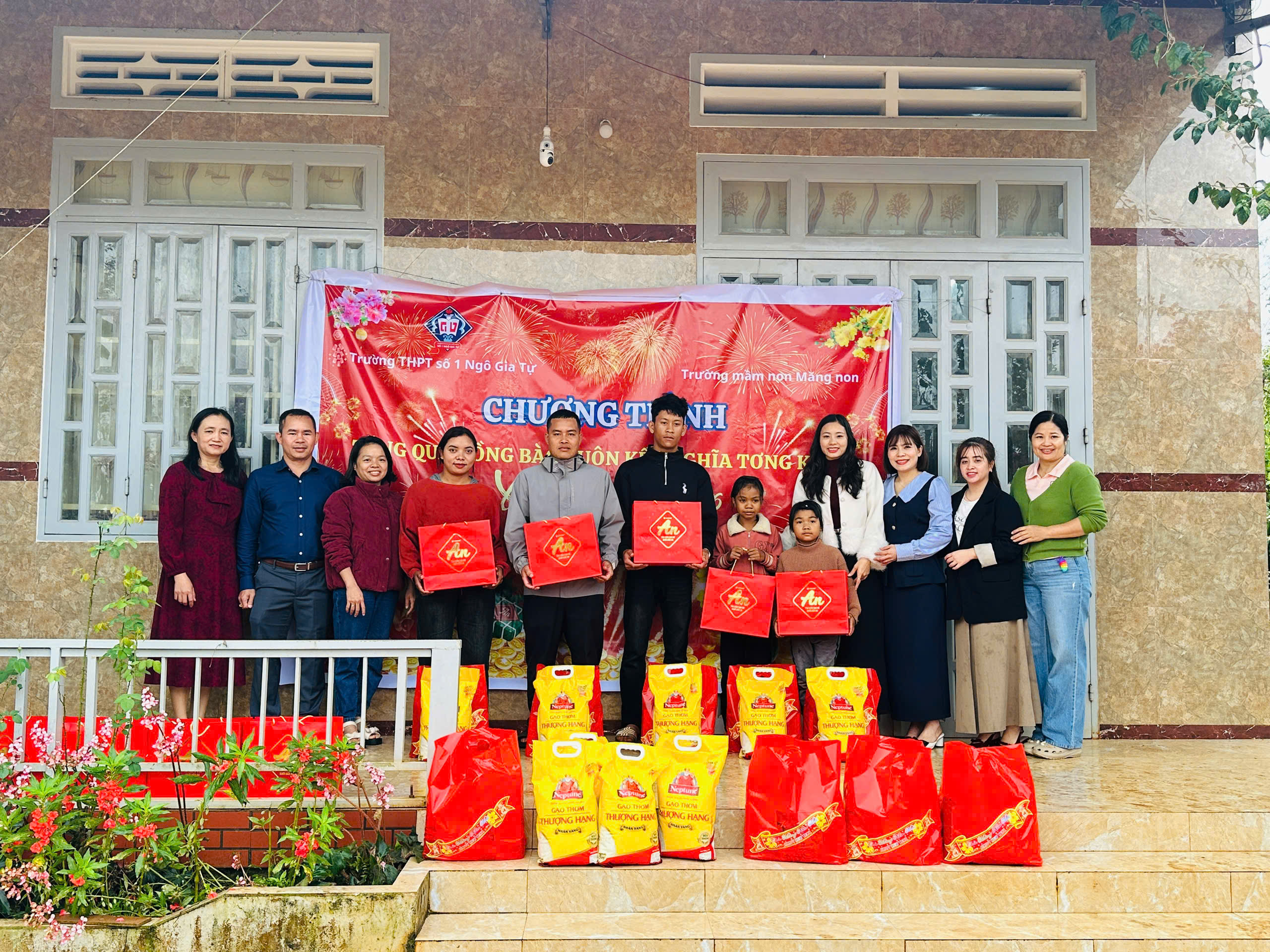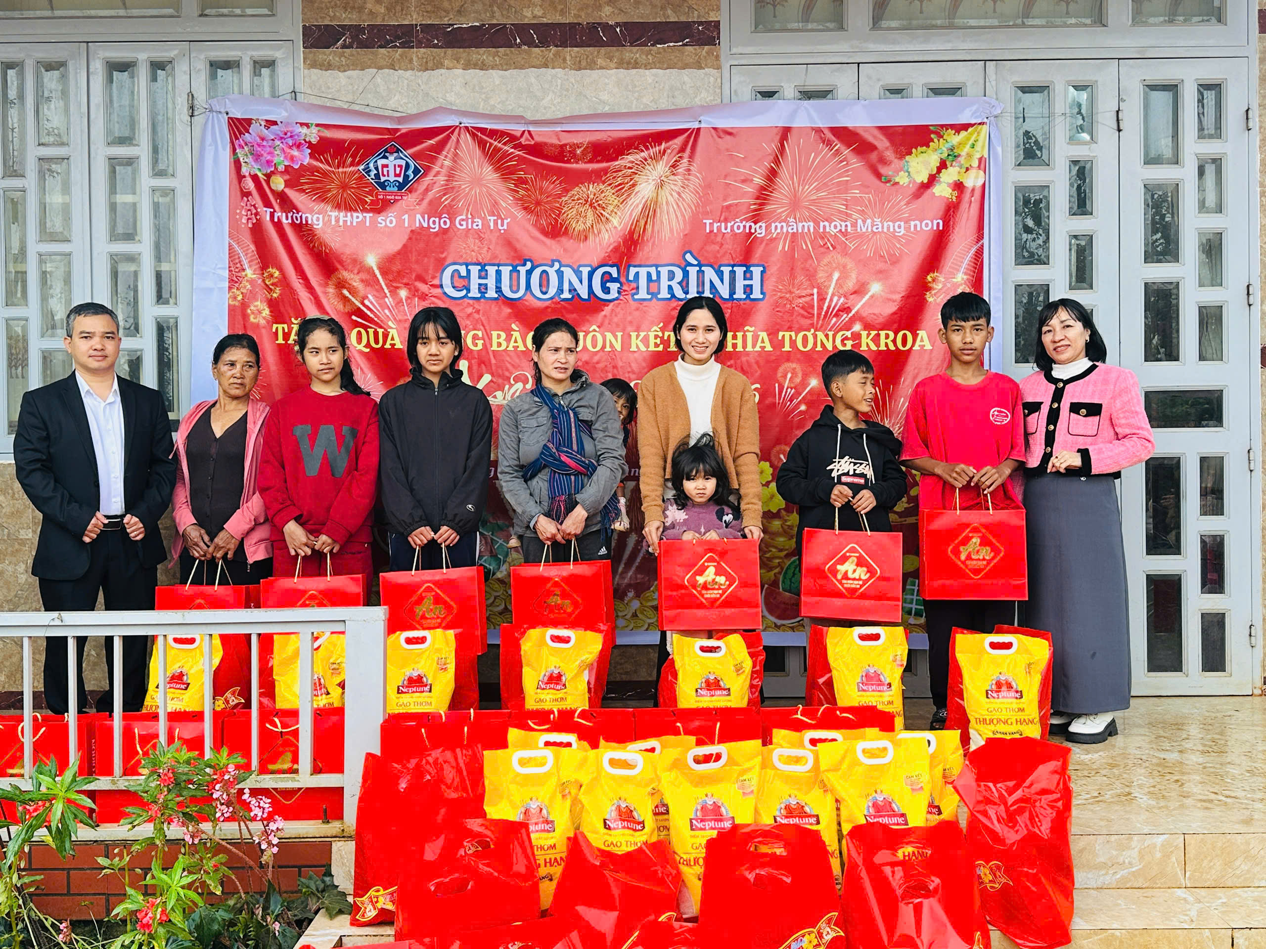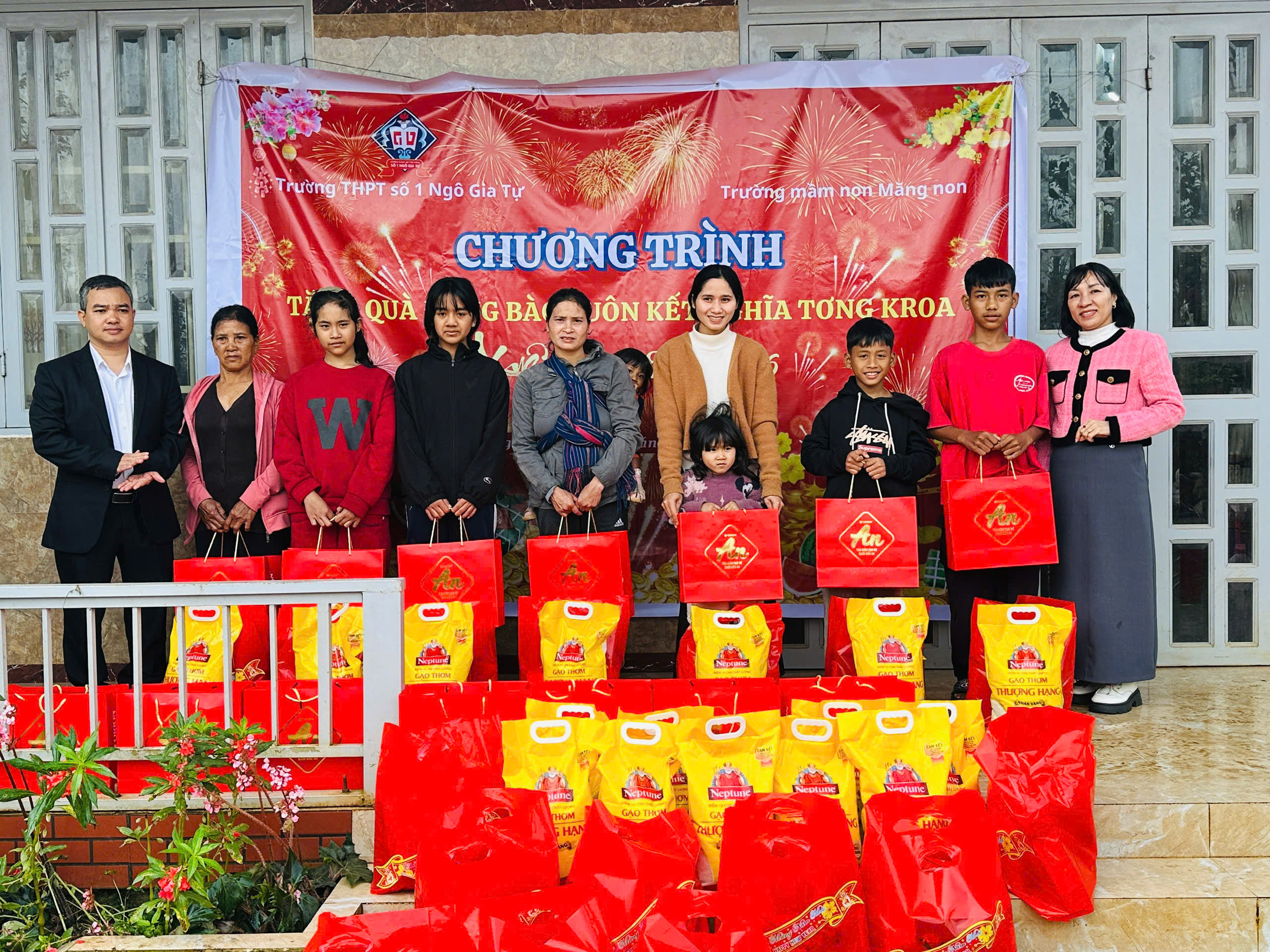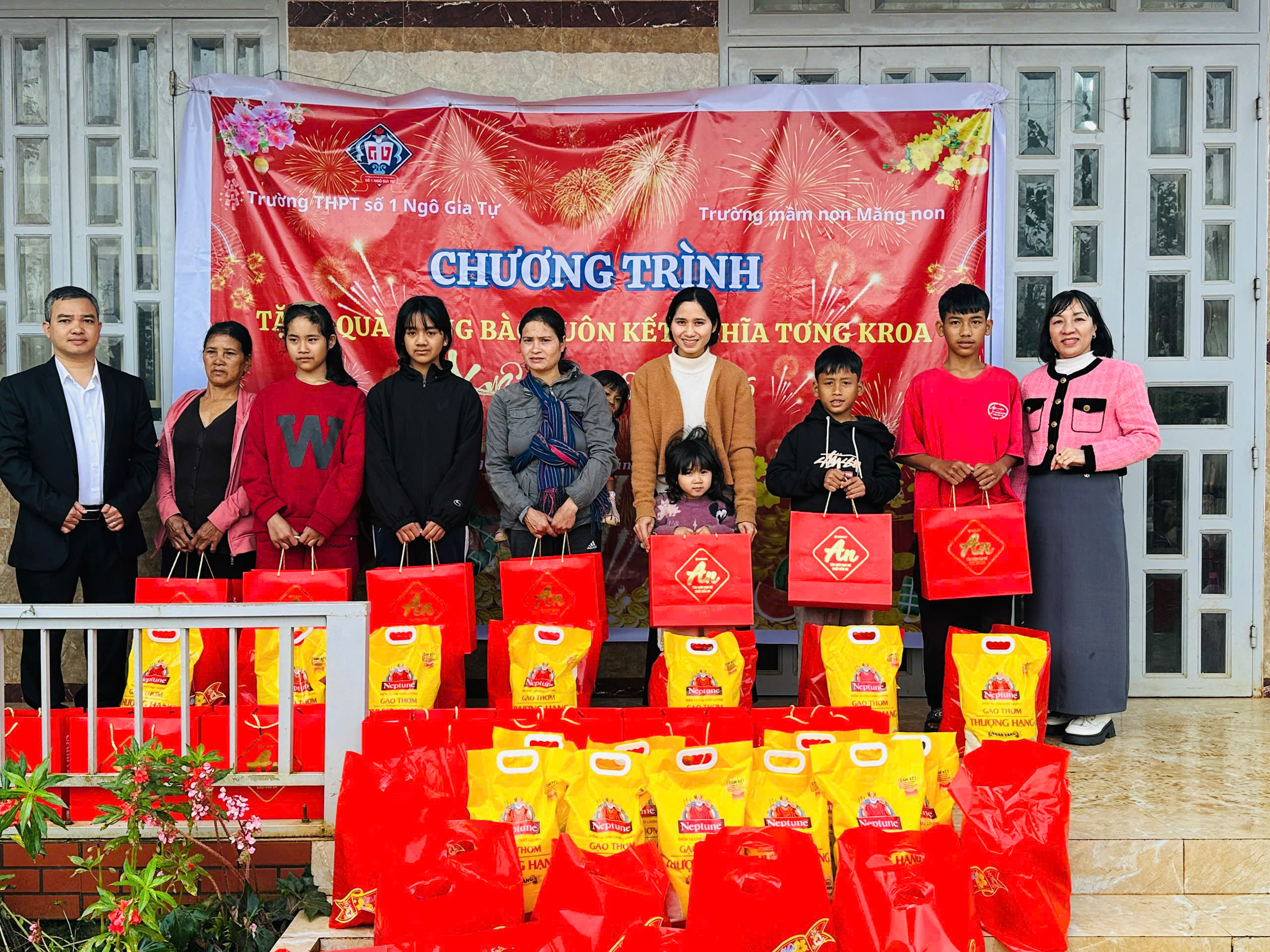 🏫 Trường Mầm Non Măng Non và Trường THPT số 1 Ngô Gia Tự đã kết hợp với nhau đến thăm và chúc Tết buôn kết nghĩa Tơng Kroa.