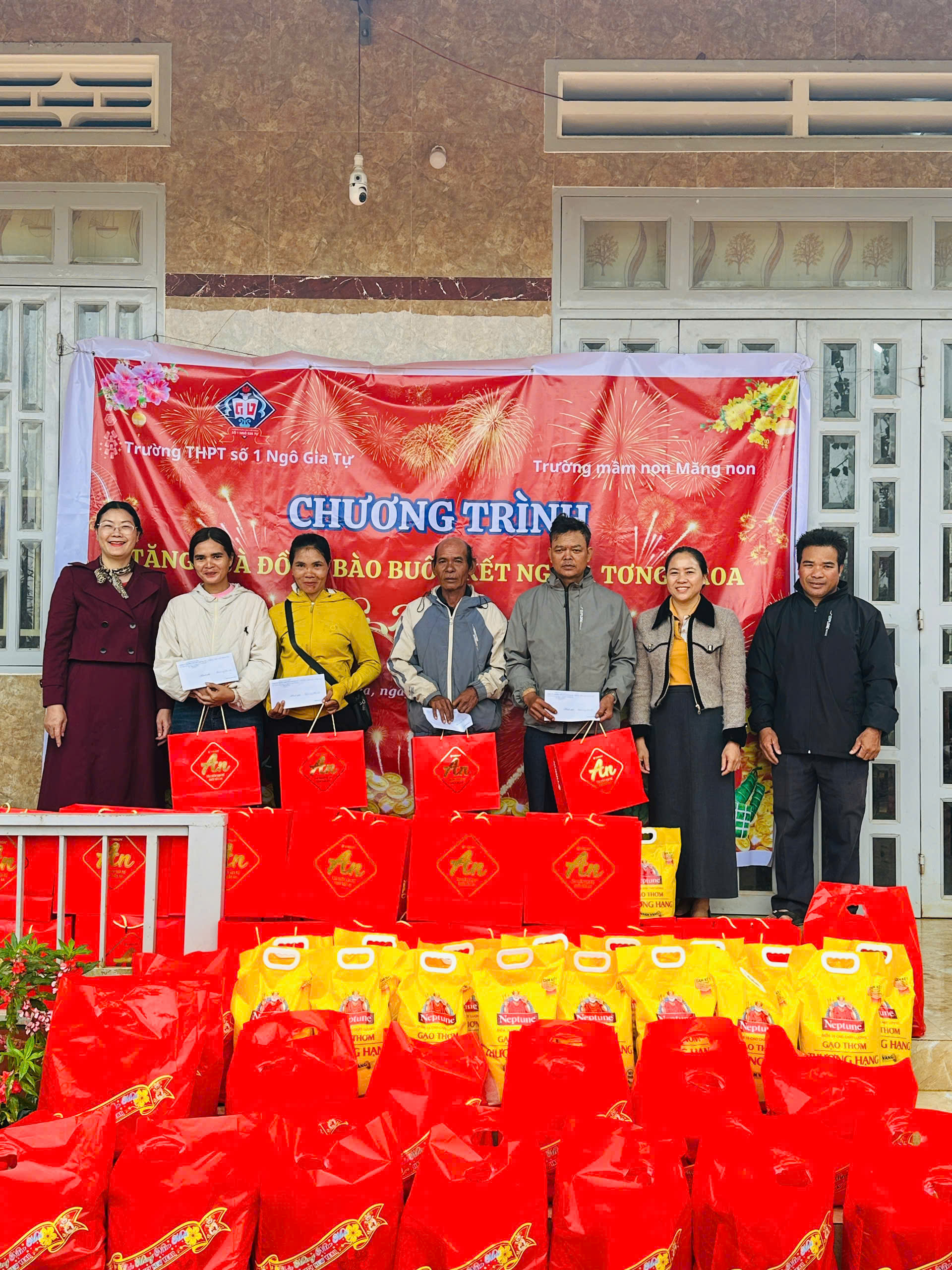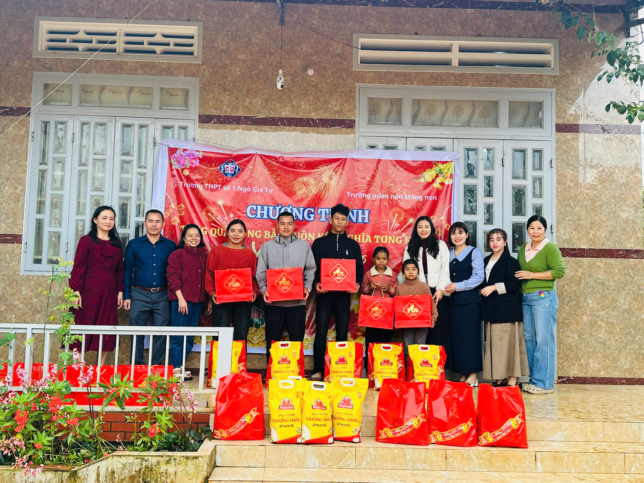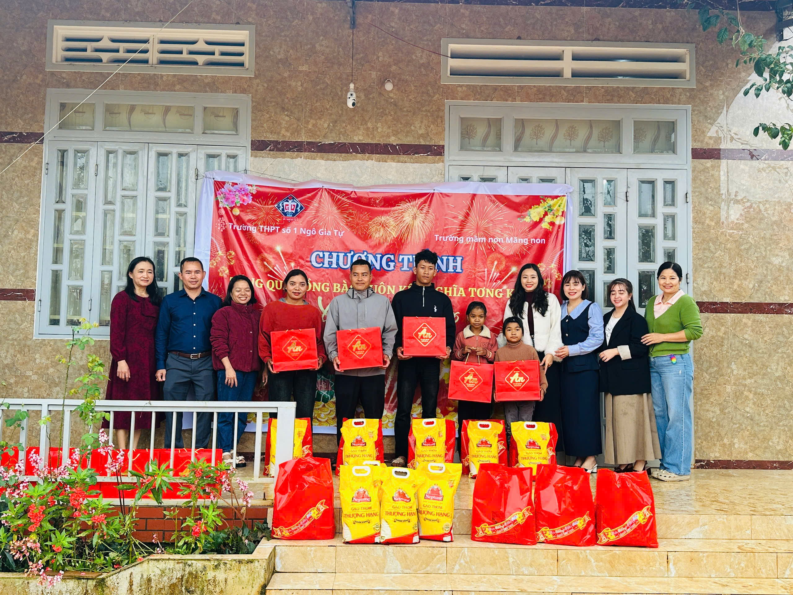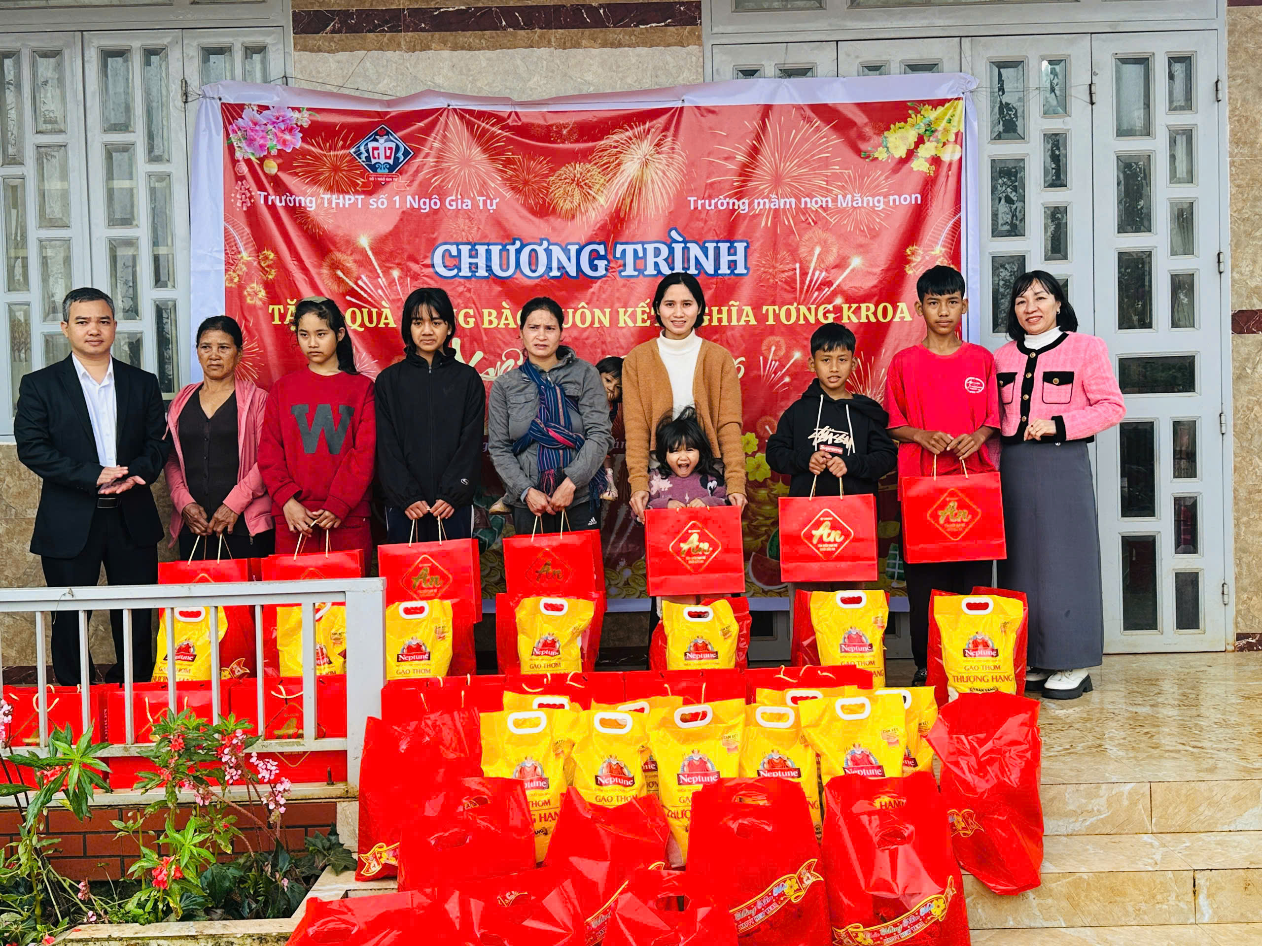 🏫 Trường Mầm Non Măng Non và Trường THPT số 1 Ngô Gia Tự đã kết hợp với nhau đến thăm và chúc Tết buôn kết nghĩa Tơng Kroa.