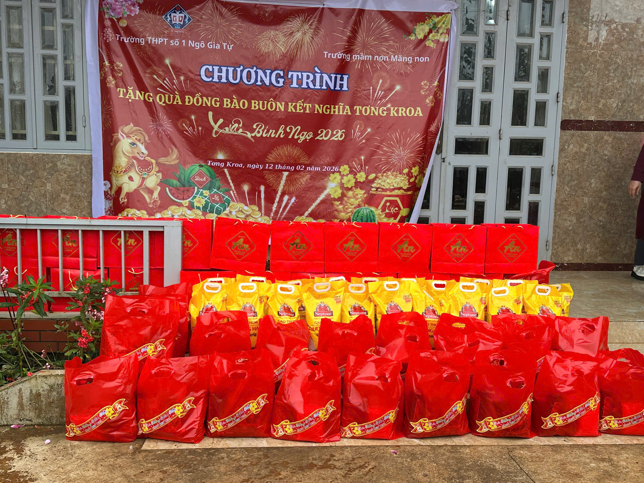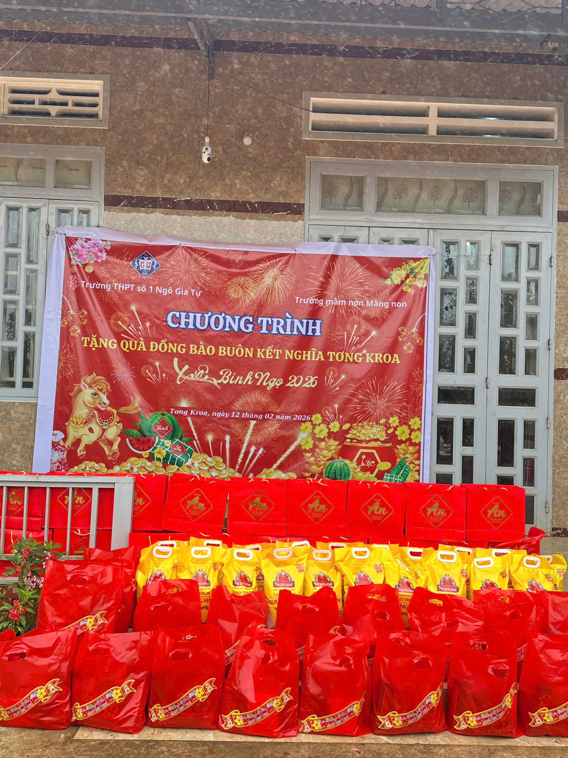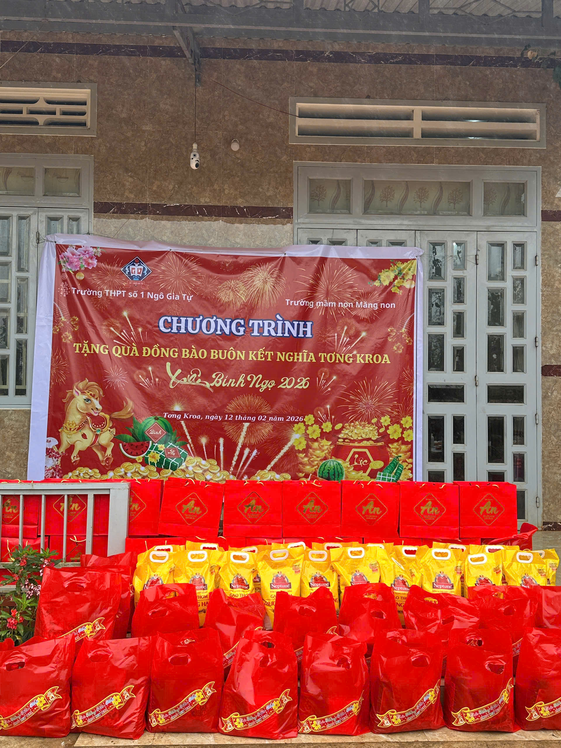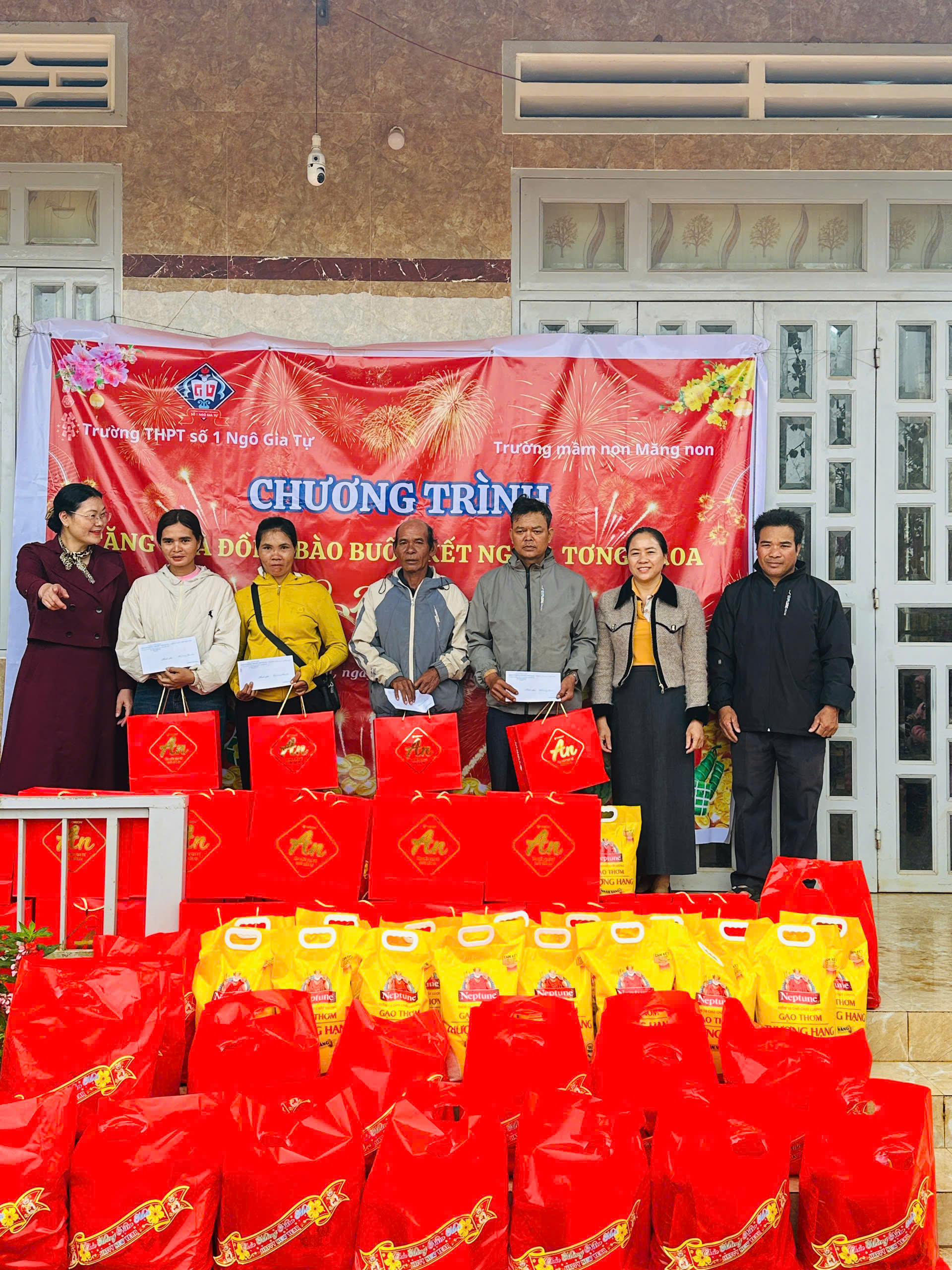 🏫 Trường Mầm Non Măng Non và Trường THPT số 1 Ngô Gia Tự đã kết hợp với nhau đến thăm và chúc Tết buôn kết nghĩa Tơng Kroa.